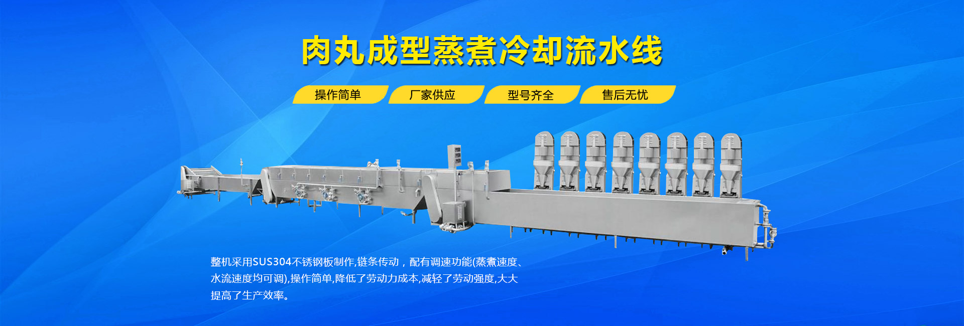 公司主要生產(chǎn)不銹鋼制品食品機(jī)械:各種規(guī)格型號真空滾揉機(jī)、制冷滾揉機(jī)、提升機(jī)、電加熱夾層鍋、肉丸機(jī)、真空攪拌機(jī)、絞肉機(jī)、灌腸機(jī)、打卡機(jī)、線扎機(jī)、斬拌機(jī)、鹽水注射機(jī)、煙熏爐、油炸機(jī)、巴氏殺菌線、連續(xù)油炸線、肉丸成型水煮線、醬鹵生產(chǎn)線、肉丸破碎機(jī)、真空包裝機(jī)、洗袋風(fēng)干機(jī)、豬頭劈半機(jī)、不銹鋼火腿模具、肉斗車、案桌、煙熏車、屠宰類機(jī)械設(shè)備、清洗風(fēng)干設(shè)備、肉類解凍設(shè)備、滾筒拌料機(jī)等。產(chǎn)品廣泛適用于火腿腸、肉丸、肉串、鹵制品、海產(chǎn)品、禽類深加工、油炸、泡椒風(fēng)味、速凍水餃、魚豆腐、千葉豆腐、豆腐干、牛肉干、牛排雞排類、禽蛋、麻辣、休閑、水果蔬菜清洗、中央廚房、餐飲連鎖、寵物食品等食品生產(chǎn)。